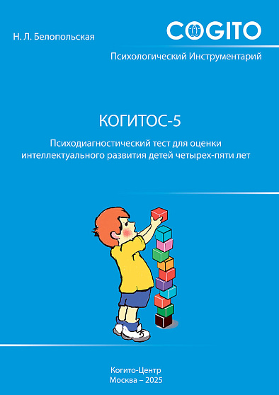 Тест "КОГИТОС-5" разработан на базе пяти апробированных ранее психодиагностических методик, входящих в комплект "КОГИТОША", и служит задаче экспресс-оценки интеллектуального развития детей четырех–пяти лет. Стимульный материал изменен и доработан в соответствии с современными социокультурными реалиями. Каждый из пяти субтестов позволяет количественно измерить разные сферы интеллектуальной деятельности ребенка: наглядно-образную, смысловую и понятийную.Тест "КОГИТОС-5" прошел психометрическую проверку и позволяет надежно дифференцировать детей с нормативным и в разной степени задержанным интеллектуальным развитием.