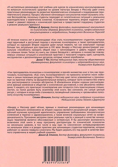 Данное 2-е издание руководства переработано и дополнено в соответствии с современными требованиями, помогая начинающим психотерапевтам любой направленности преодолеть разрыв между курсовыми работами и клинической практикой. Оно дает представление о том, что работает, а что нет, во взаимоотношениях с пациентами; объясняет тонкости терапевтических отношений, чтобы справляться с распространенными клиническими проблемами.Книга содержит как проверенные временем, так и новые материалы, помогая разработать правила использования электронной почты и текстовых сообщений, ориентироваться в социальных сетях, использовать электронные медицинские карты и оптимизировать телетерапию. Даются сведения о профессиональном развитии и управлении влиянием жизненных событий на психотерапевта (беременность и отпуск по уходу за ребенком, отпуск, проблемы со здоровьем); переработана глава о расстройствах, связанных с употреблением психоактивных веществ, с акцентом на методы мотивационного интервьюирования. Книга содержит множество примеров из практики, отвечая на вопросы, опасения и сомнения начинающих специалистов.