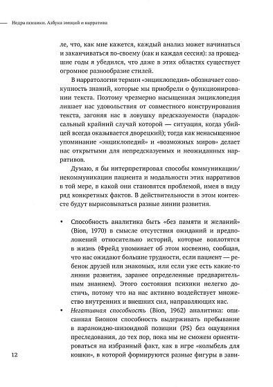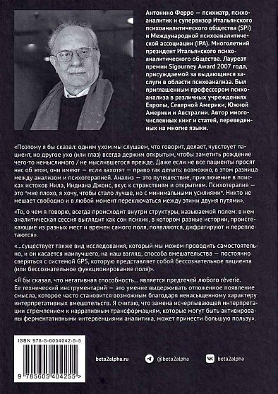 В этой книге Антонино Ферро продолжает развивать свою оригинальную модель аналитического поля. Приводя многочисленные клинические случаи, автор демонстрирует особенности своего подхода, следуя за фантазиями и образами, выходя за рамки очевидных интерпретаций. Вместо того чтобы расшифровывать значения, он предлагает сконцентрироваться на том, что происходит между аналитиком и пациентом, как если бы это было сновидение, совместно создаваемое здесь и сейчас.Ферро предлагает рассматривать каждую коммуникацию пациента как сон, предваряя ее волшебным фильтром "мне приснился сон, в котором...", благодаря чему даже самые реалистичные нарративы отражают внутренний мир пациента. Опираясь на идеи Биона, автор подчеркивает важность альфа-функции, превращающей неосмысленные сенсориальные элементы в образы и делающей их доступными для сно-видения и формирования бессознательного. Цель психоанализа, по Ферро, — помочь пациенту сновидеть сны, которые не могли быть сновидены прежде, развивая тем самым его инструменты мышления и трансформирующую онейрическую функцию. Автор затрагивает и трудные темы — нарушения сеттинга, моменты, когда аналитик захвачен бессознательными процессами в поле, и то, как эти сбои могут стать частью исцеляющего процесса.